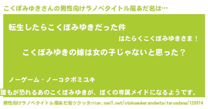 | 胡散臭い通販商品みたいなあだ名 | 『伝統あるサプリメント…その名も「こくぼみゆき」』 |