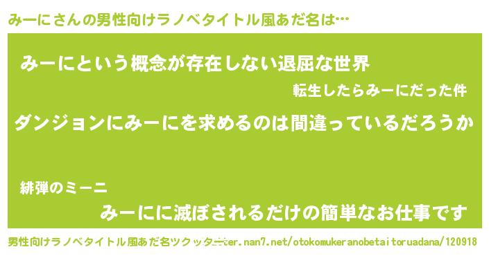 | 女子向けラノベタイトル風あだ名 | 『みーには平凡を望む』 |