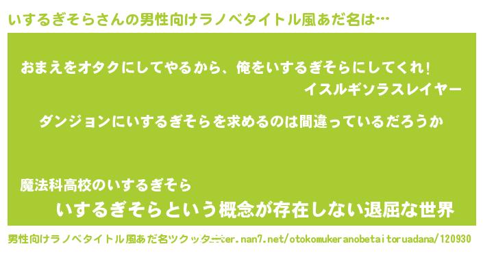 | 胡散臭い通販商品みたいなあだ名 | 『伝統あるサプリメント…その名も「いするぎそら」』 |