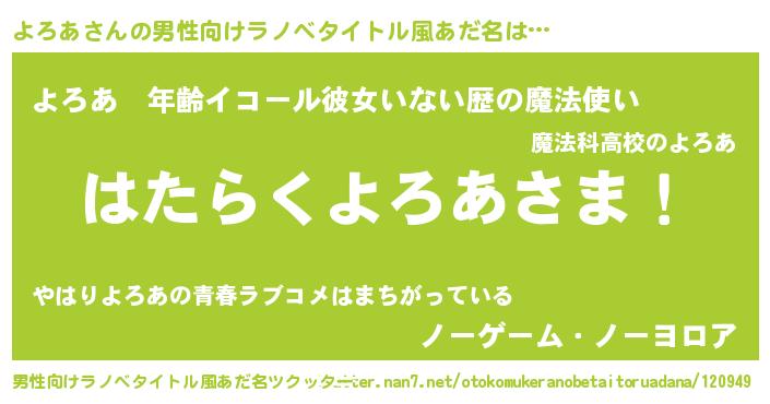 | 欧米人風あだ名 | 『アンジェラ・よろあ』『ダニエルよろあ』 |