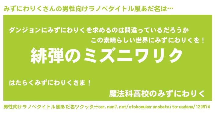 | 胡散臭い通販商品みたいなあだ名 | 『信頼と実績のペンダント…その名も「みずにわりく」』 |