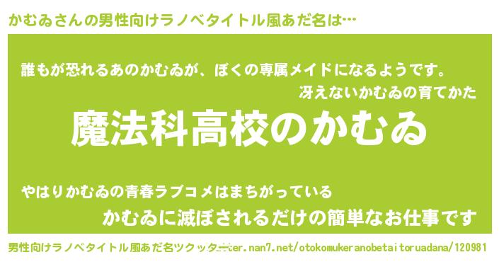 | 意味不明あだ名 | 『自称かむゐ』『永久保存かむゐ』 |