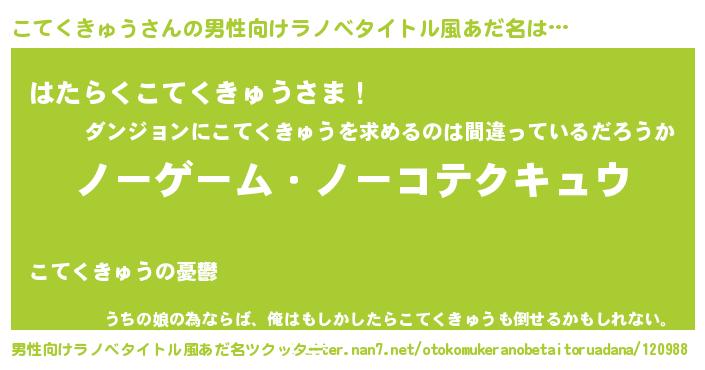| ヒーロー風カッコイイあだ名 | 『慈愛の使者こてくきゅう』 |