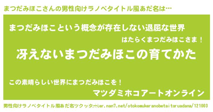 | 胡散臭い通販商品みたいなあだ名 | 『来世でも幸せになれる健康食品…その名も「まつだみほこ」』 |