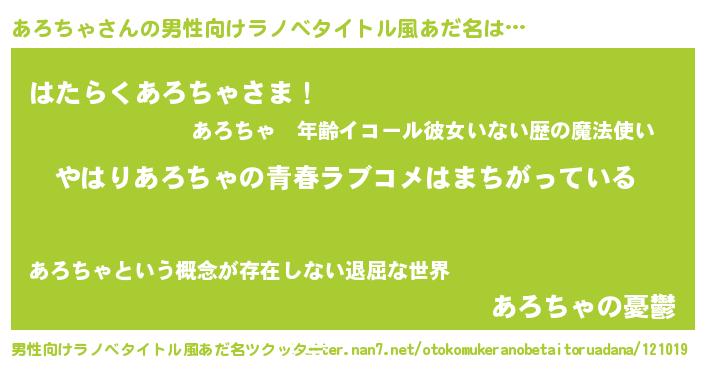 | 意味不明あだ名 | 『あろちゃフォーエバー』『自称あろちゃ』 |