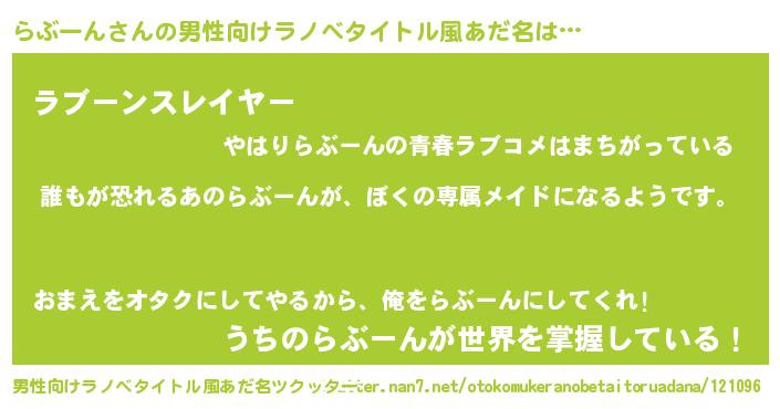 | ヘコむあだ名 | 『らぶーん(笑)』『牛乳』『らぶを』 |