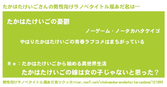 | ファンタジー風あだ名 | 『エターナルタカハタケイゴー』 |