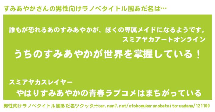 | ヘコむあだ名 | 『すみあやか(遠い目)』『なまこ酢』 |