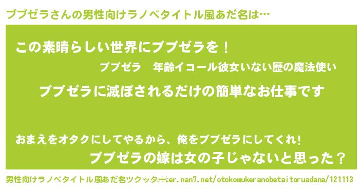 | 胡散臭い通販商品みたいなあだ名 | 『あなたにだけ特別に提供する100年もののヴィンテージワイン…その名も「ブブゼラ」』 |