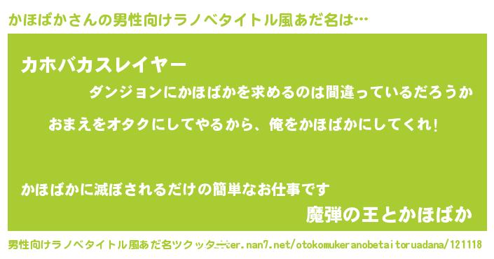 | 女子向けラノベタイトル風あだ名 | 『かほばか夫妻のなれそめ』 |