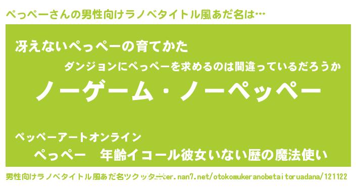 ぺっぺーさんの男性向けラノベタイトル風あだ名をツクッター!