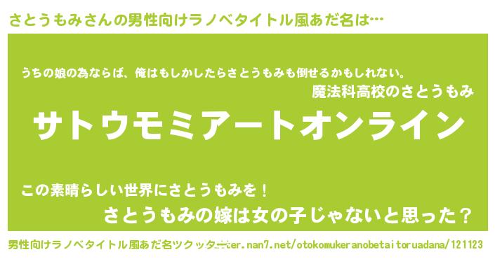 | ファンタジー風あだ名 | 『サトフェル』『エターナルサトウモミー』 |