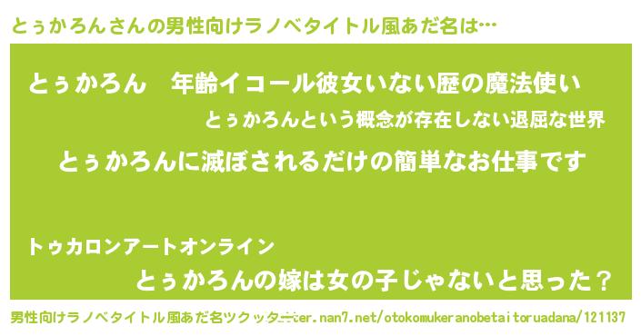 | 胡散臭い通販商品みたいなあだ名 | 『伝統あるペンダント…その名も「とぅかろん」』 |