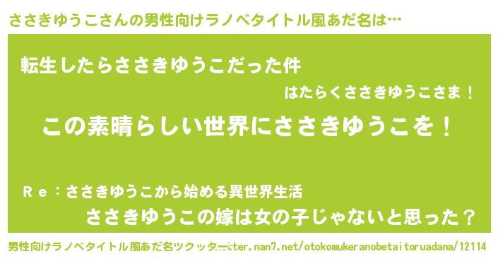 | 女子向けラノベタイトル風あだ名 | 『悪役ささきゆうこに転生したようですが、知った事ではありません』 |