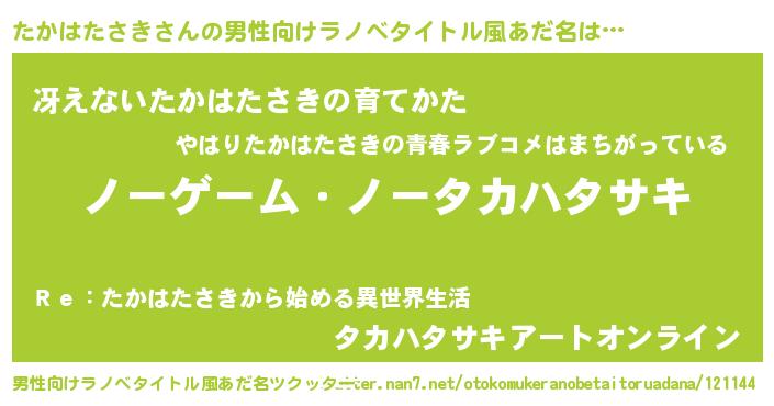 | ヘコむあだ名 | 『たかもー』『なまこ酢』『たかお』 |