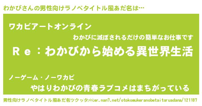 | ファンタジー風あだ名 | 『ゼワカトゥ』『ワカフェル』 |