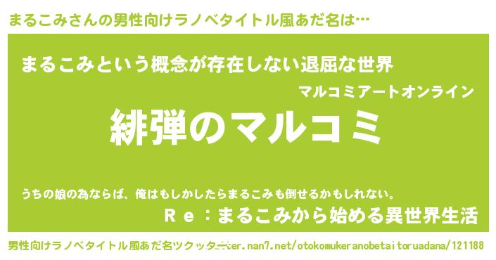 | 伝説のあだ名 | 『聞きしに勝る勇者まるこみ』 |
