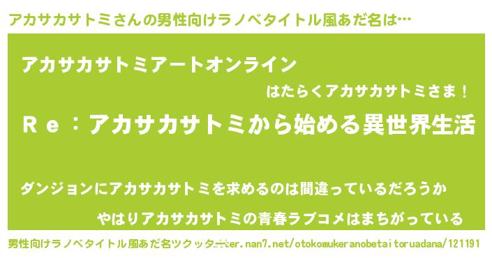 | 意味不明あだ名 | 『自称アカサカサトミ』 |