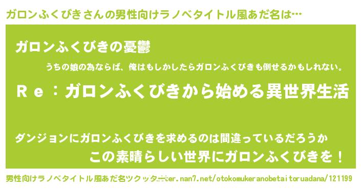 | 意味不明あだ名 | 『自称ガロンふくびき』 |