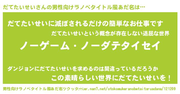| 女子向けラノベタイトル風あだ名 | 『死神だてたいせいの再婚』 |