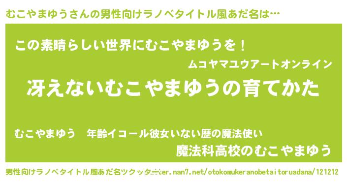 | 欧米人風あだ名 | 『むこやまゆう・ステッグマイヤー』 |