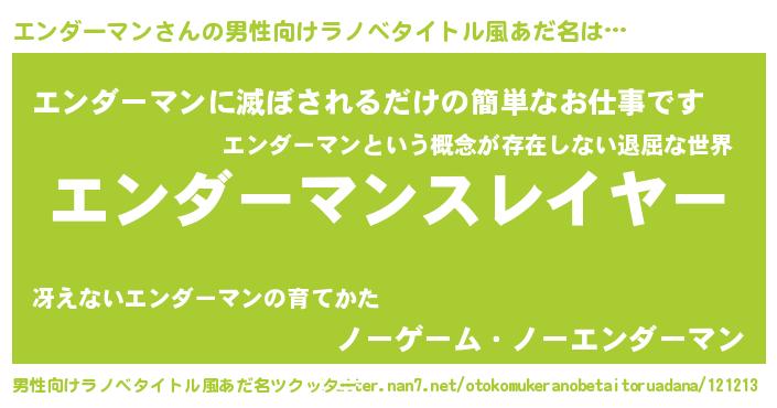 | ヘコむあだ名 | 『エンダーマン(苦笑)』『エンっちょ』 |