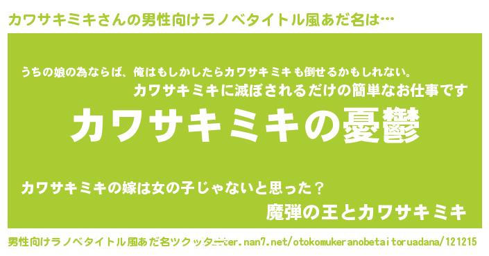 | 女子向けラノベタイトル風あだ名 | 『カワサキミキ姫と円卓の騎士』 |