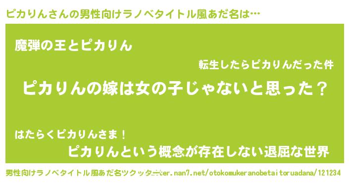 | 女子向けラノベタイトル風あだ名 | 『ピカりん様がみてる』 |