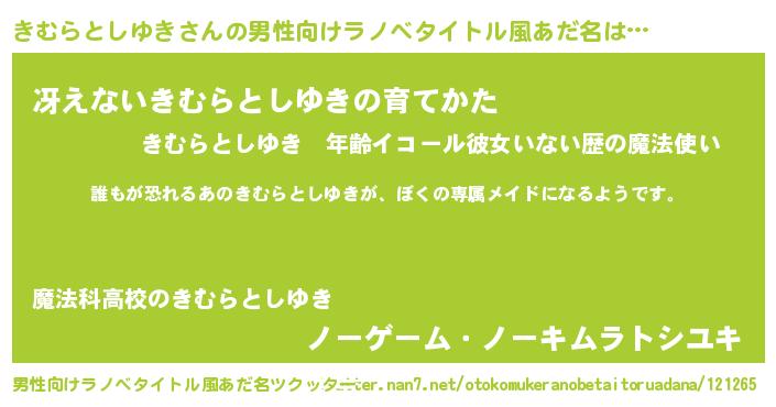 | ヘコむあだ名 | 『きむらとしゆき(小並感)』『きむにゅー』 |