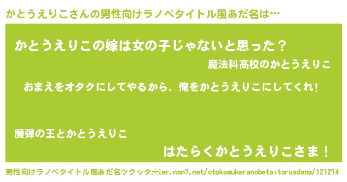 | 女子向けラノベタイトル風あだ名 | 『かとうえりこ夫妻のなれそめ』 |