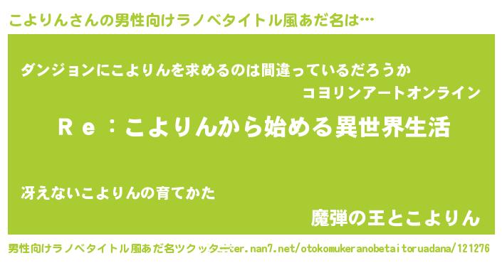 | 胡散臭い通販商品みたいなあだ名 | 『芸能人もオススメする高麗人参…その名も「こよりん」』 |