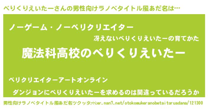 | 女子向けラノベタイトル風あだ名 | 『べりくりえいたーアンティーク』 |