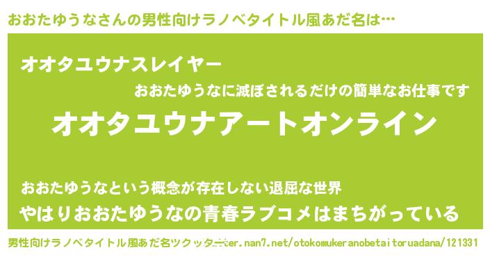 | 女子向けラノベタイトル風あだ名 | 『おおたゆうな姫と円卓の騎士』 |