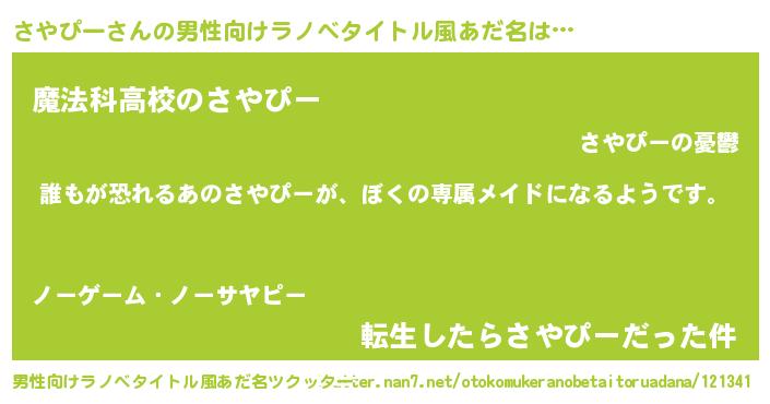 | 女子向けラノベタイトル風あだ名 | 『さやぴーの契約王妃』 |