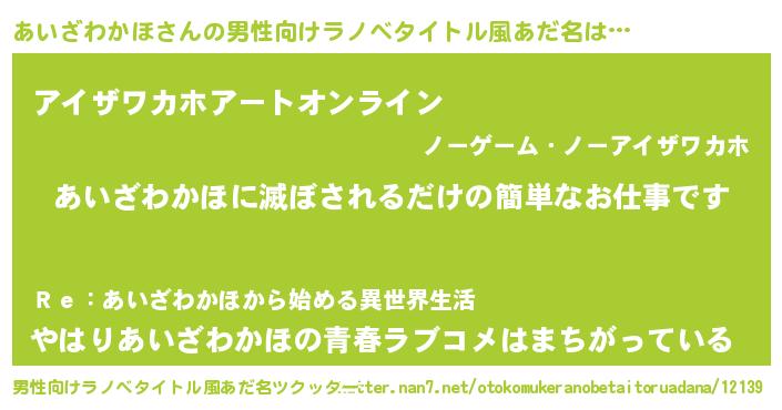 あいざわかほさんの男性向けラノベタイトル風あだ名をツクッター!
