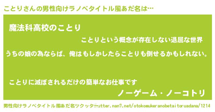 | 女子向けラノベタイトル風あだ名 | 『ことり伯爵の花嫁』『ことり恋絵巻』 |