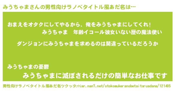 みうちゃまさんの男性向けラノベタイトル風あだ名をツクッター!