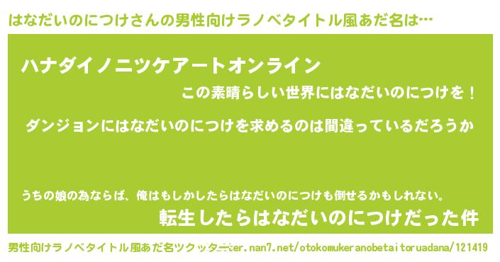 | 女子向けラノベタイトル風あだ名 | 『はなだいのにつけは平凡を望む』 |