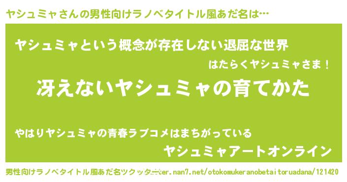 | 意味不明あだ名 | 『永久保存ヤシュミャ』 |