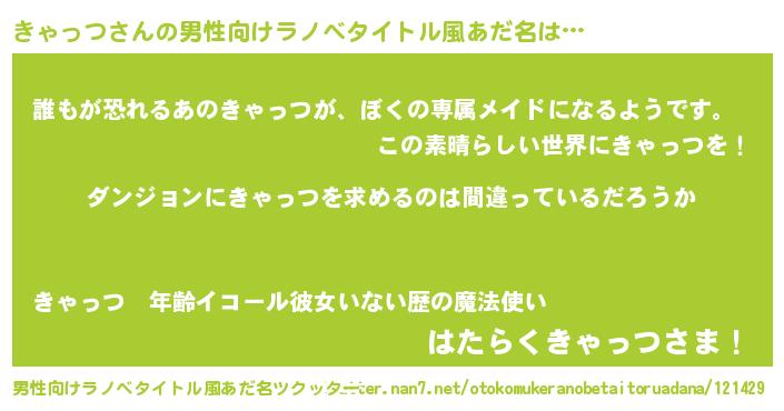 | 女子向けラノベタイトル風あだ名 | 『きゃっつは平凡を望む』 |