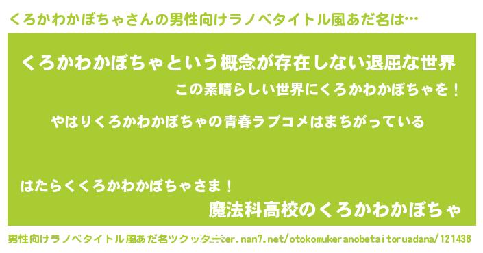| 女子向けラノベタイトル風あだ名 | 『くろかわかぼちゃ伯爵の花嫁』 |