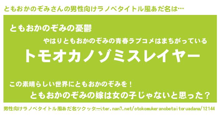 | 胡散臭い通販商品みたいなあだ名 | 『必ず成功する霊験あらたかなお札…その名も「ともおかのぞみ」』 |