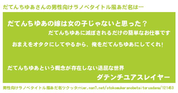 | 女子向けラノベタイトル風あだ名 | 『だてんちゆあ夫妻のなれそめ』 |