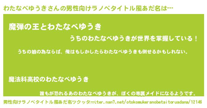 | ファンタジー風あだ名 | 『エターナルワタナベユウキー』 |