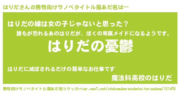 | 女子向けラノベタイトル風あだ名 | 『(仮)はりだのやんごとなき事情』 |