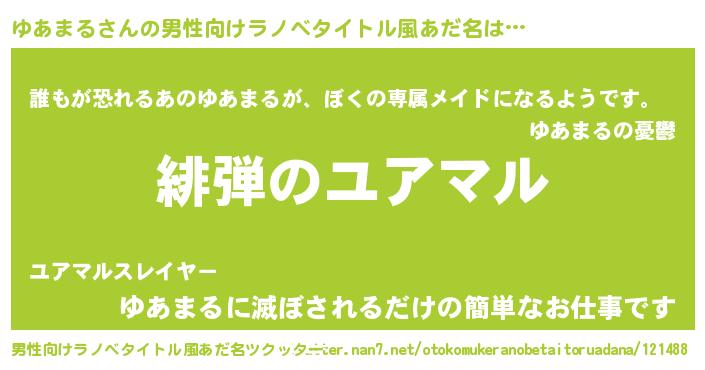 | ヘコむあだ名 | 『ゆあまる(苦笑)』『ゆあにゅー』 |