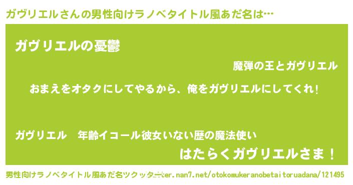 | 女子向けラノベタイトル風あだ名 | 『ガヴリエル夫妻のなれそめ』 |