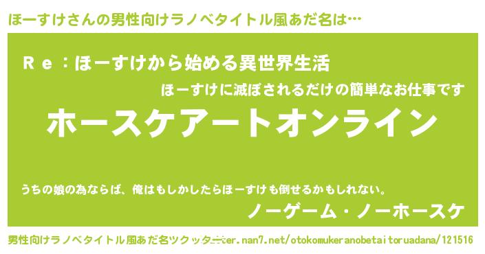 | 胡散臭い通販商品みたいなあだ名 | 『億万長者になれるブレスレット…その名も「ほーすけ」』 |