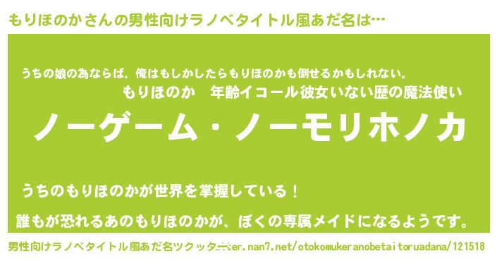 | 女子向けラノベタイトル風あだ名 | 『もりほのか恋絵巻』 |