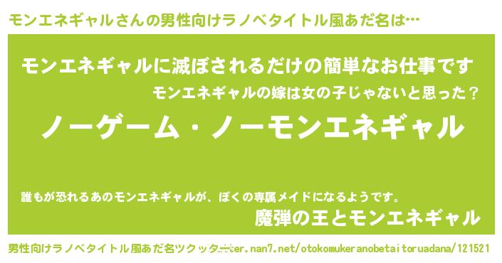| ヒーロー風カッコイイあだ名 | 『慈愛の使者モンエネギャル』 |